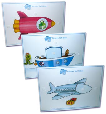 set includes three A4 size vehicle boards, 12 characters/objects,